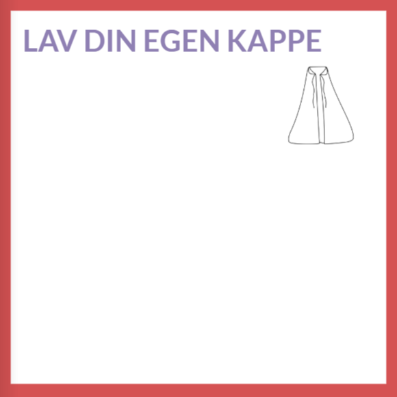 Vejledning: Eleverne skal lave deres egen fysiske kappe af f.eks. stof, avispapir eller lignende. De pynter kappen med noget, de godt kan lide (f.eks. fodbolde, hjerter, stjerner e.l.)Øvelsen kan laves individuelt, som makkerøvelse eller fælles i hele klassen, hvor der tages et samlet billede af alle eleverne med deres kapper.