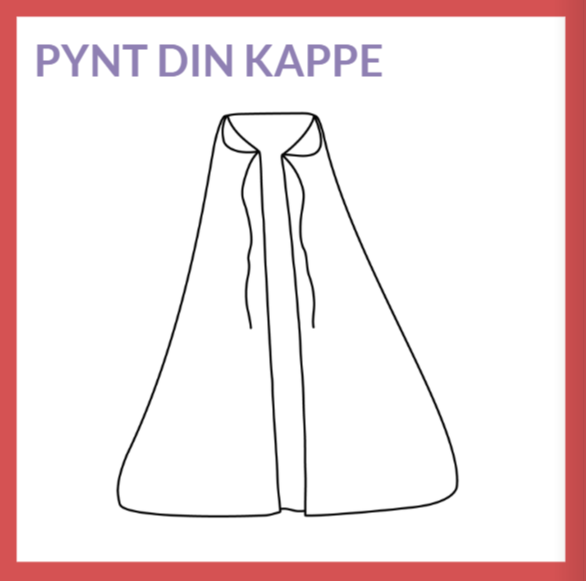 Vejledning: Eleverne skal hver især pynte en digital udgave af kappen i Book Creator. De pynter kappen med noget, de godt kan lide. Opgaven optræder som alternativ til side 13. Den digitale version af opgaven styrker elevernes digitale billedskabelse og symbolforståelse i et digitalt medie. Den giver samtidig mulighed for differentiering og kan indtænkes som alternativ for elever, der ikke ønsker fysisk optræden.