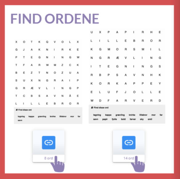 Øvelsen kan laves individuelt, som makkerøvelse eller fælles i hele klassen, hvor eleverne på skift kommer op og finder et ord.