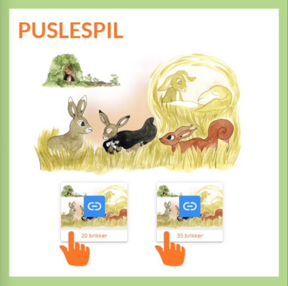 Indhold: To puslespil med et billede fra bogen