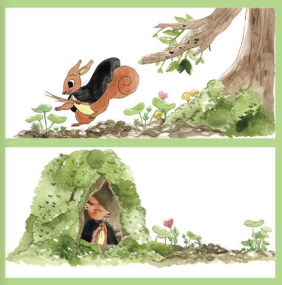 Vejledning: Eleverne skal genfortælle historien ved hjælp af illustrationer fra bogen.
