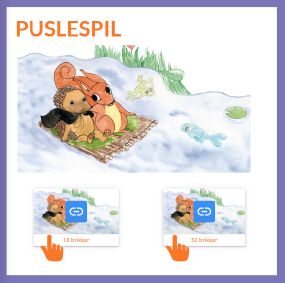 Indhold: To puslespil med et billede fra bogen
