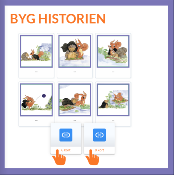 Indhold: Interaktivt element hvor eleverne skal placere billederne i rækkefølge og genskabe historien. Elementet findes i to versioner med henholdsvis 6 og 9 kort.