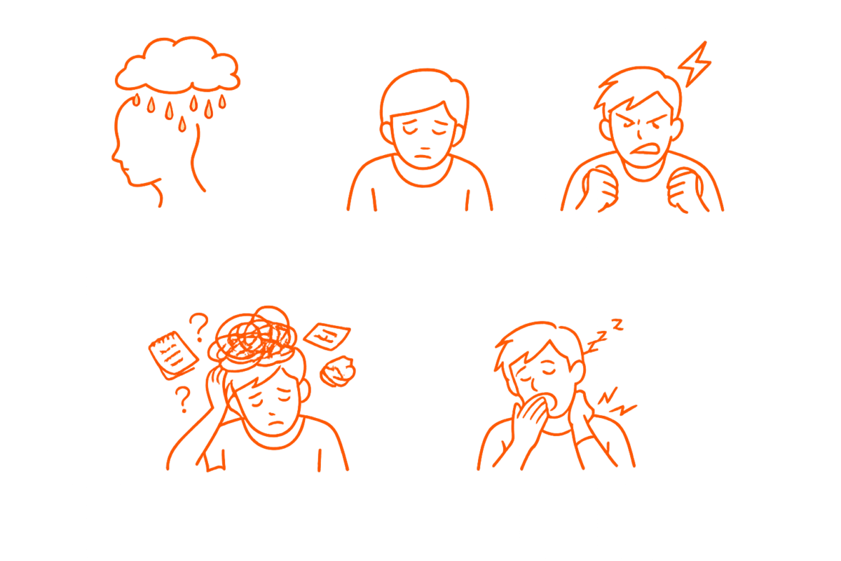 - fysiske reaktioner som træthed, spændinger eller søvnproblemer